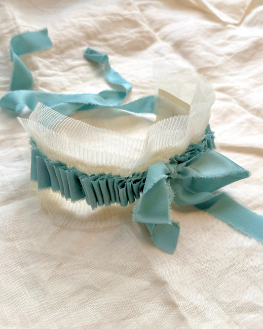 Sea Foam Blue Ruffles and Ivory Tulle Collar